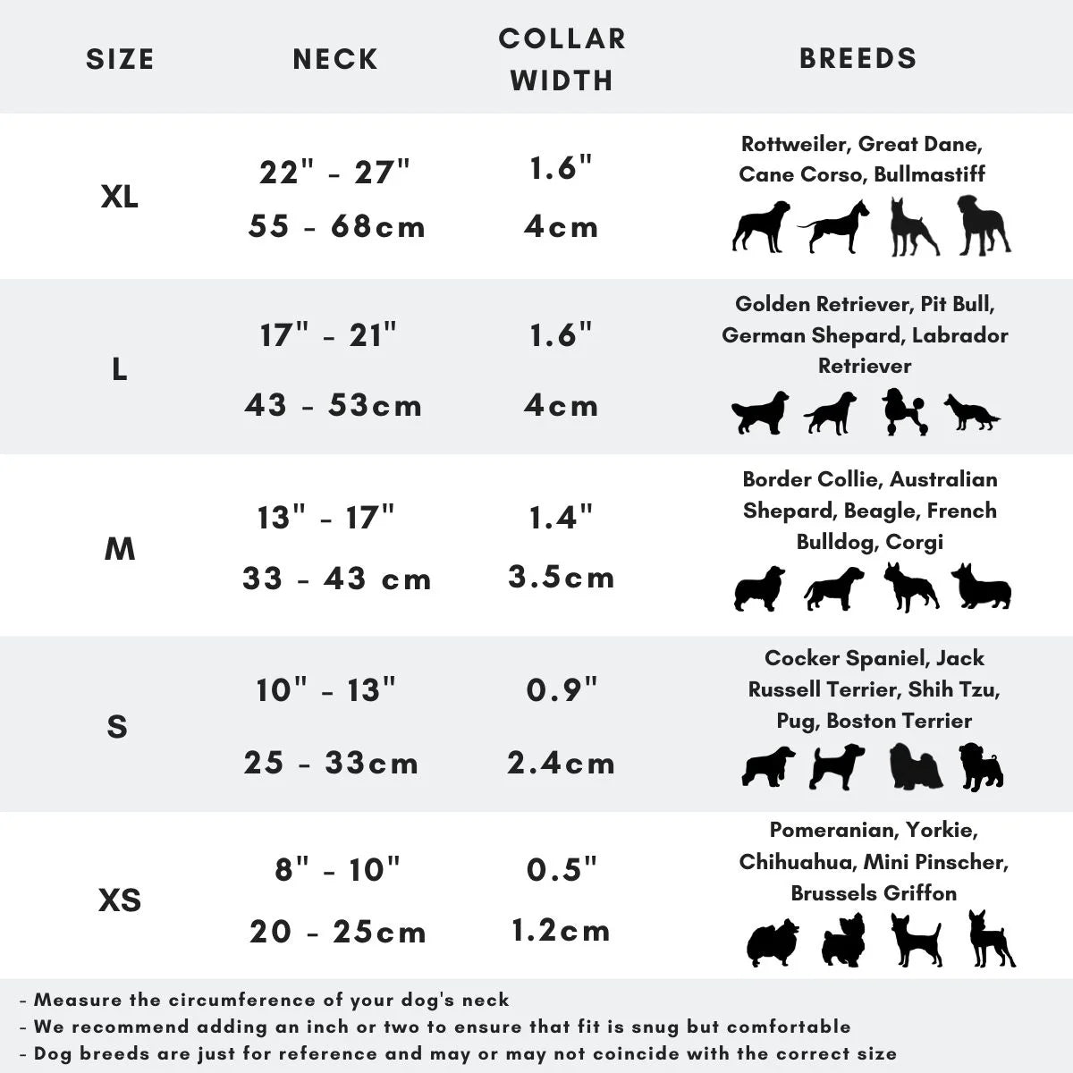 Please note that all dog collar sizes are taken from the middle hole to the point where the buckle meets the leather